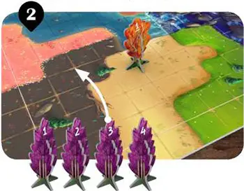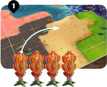 Place the first Active Leaf Token at the base of the Tree on either of the 2 immediately adjacent Terrain Squares in the direction of the wind.