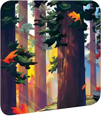 Each player controls a species of tree thriving in the beautiful terrain of a national park.