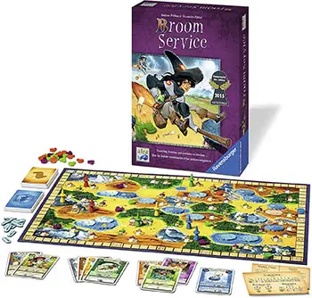 Players become witches, druids and gatherers, producing powerful potions and delivering them by Broom Service throughout the magi- cal realm. Round after round, enchanted rivals choose four of ten role cards. Each card has a brave and cowardly action.