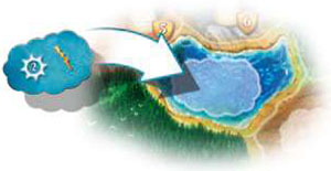 After seven rounds the game ends. Each player receives victory points for collected lightning (see back of summary) and remaining resources: Score 4 VP for each set of four different resources; score 2 VP for each set of three different resources.