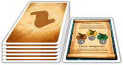 The 10 event cards are shuffled. 7 cards are placed in a stack next to the board and the remaining 3 cards are returned to the box without looking at them.