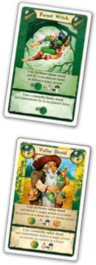 Carla begins the next turn by playing a new role card and proclaiming: "I am a cowardly valley druid ..".. She immediately delivers a potion to a free tower in the forest. Daniel then says, "next!" because he does not have the valley druid ... etc.