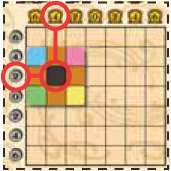 Example: The green player has sold a black work of art. After having moved the Workshop cursor, the cursor indicates an income of 2 BF and 4 VP.