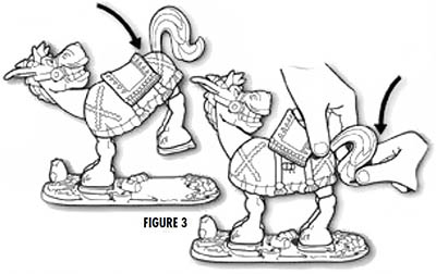Push Buckaroo's bottom down until his back legs touch the base. Then push his tail down to lock him into place. See Figure 3.