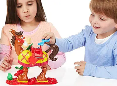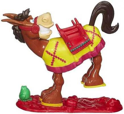In this saddle-stacking game, you never know when Buckaroo will buck, and send the gear flying in all directions. So be real careful as you load him up, pardner. One buck, and you're out of luck!