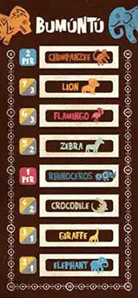 In the example on the right, players would receive two favor for each Chimpanzee tile they've collected and one favor for each Rhinoceros tile they've collected.