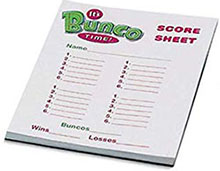 Bunco is a light-hearted, friendly game of rolling three dice. It's fun to ring the bell each time a "Bun- co" is rolled or when a player reaches "21".