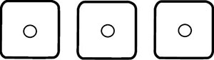 Three tables, each equipped with one score sheet, pencil, three dice. The bell is placed on the "head" table. Only the Master Score Sheet at the head table will be used during play. The scorekeeper seated at this table for Round One should enter the names of all twelve players on the sheet.