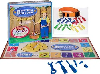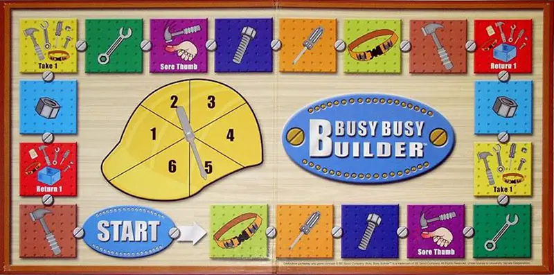 The first player to collect all the tools of his/her color (hammer, screwdriver, wrench, bolt, nut) and the Tool Belt - while NOT wearing the Sore Thumb - is the winner - the Busy, Busy Builder!