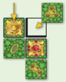 Note: In the unlikely event that more than 2 Jungle spaces must be filled in a turn, you first place the 2 faceup Jungle tiles, then draw additional Jungle tiles from the facedown draw pile to fill the remaining Jungle spaces.