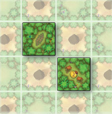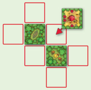 This will create a checkerboard pattern of Worker and Jungle tiles. The starting tiles have already determined whether you have to put a Worker tile or a Jungle tile on an unoccupied square of this pattern. The spaces where Jungle tiles must be placed are referred to as Jungle spaces.