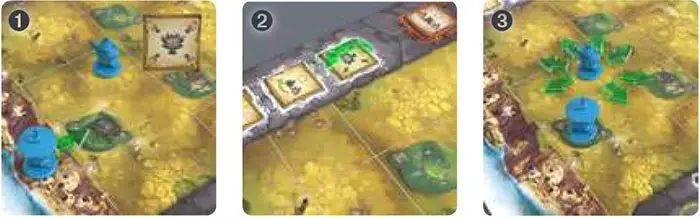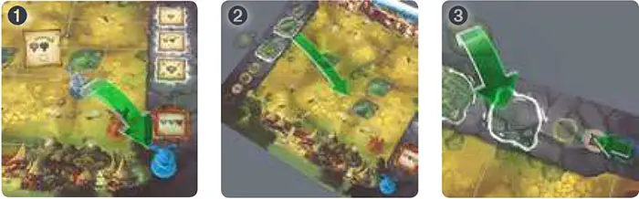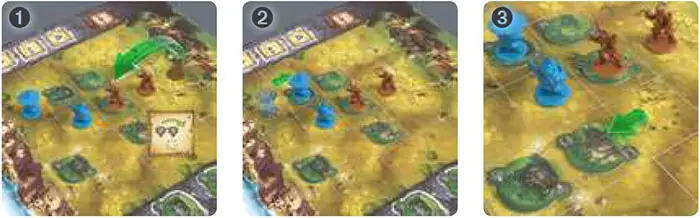 Important: By using the move or jump action, your shaman can exit through your opponent's village, and construct a megalith (see page 5). This is the only way to exit the field.