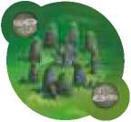 Adjacent: You can choose a shaman/megalith in one of the eight spaces surrounding the megalith.