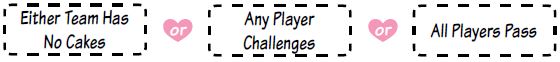 Deal each player gets a hand of 4 cards. Give the team that goes first 4 cakes. Give the other team 5 cakes. Cakes are a shared team resource.