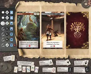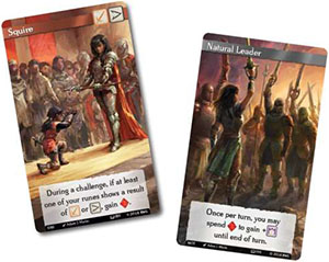 In Call to Adventure, players face challenges and acquire traits over the course of three Acts. Along the way, each player's hero will gain Triumph points for victories, Tragedy points for following a darker path, and Experience tokens when they fail.