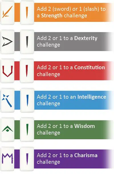 - Add one matching Ability rune for each relevant Ability icon you have in your story. Ability runes are relevant to a challenge if they are listed on the card under its difficulty on the left-hand side of the challenge card.