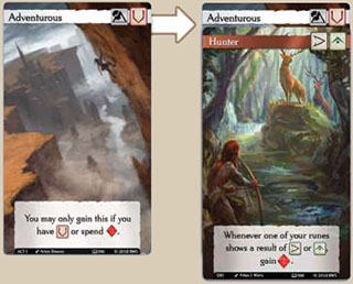 The runes give Call to Adventure the element of chance, but you can improve the odds by building your hero's Abilities. When you "cast the runes" you throw them on the table to see which sides land face-up.