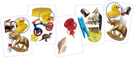 In this example, all of the circled cards have a rubber duck that matches the Find Me tile, so they get collected.