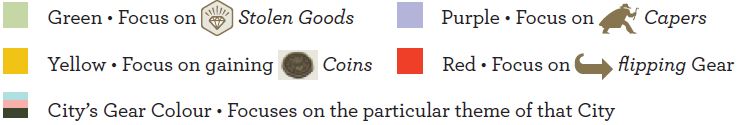 Choose the City. You'll find City icons in the lower left corner of Thieves, Gear, and Location cards. Choose one City among the three available: Paris, Rome, or London.