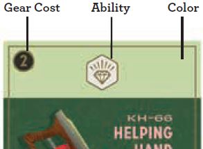from the Supply. Some Gear cards have a Cost in the top left area. In order to play it, a player must pay that amount of Coins to the Supply. If a player does not have