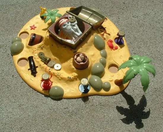 The Treasure Chest contains the Skeleton who comes to life when the Monkey is pushed down.