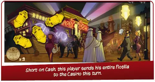 Each Ship moored in front of the Casino in Macao earns its player 2 coins, taken from the common Pile of Money and placed in the player's Family Safe.