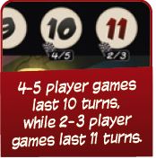 When the Turn marker reaches the last spot on the Game Turn track, all players get one final turn and the game ends. The player with the most Victory points is declared the winner. Game Turn