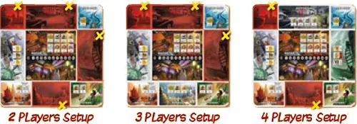 Place Macao and the surrounding Ports 1 in the center of your game table. Depending on the number of players in your game, some Ports may be closed for business: