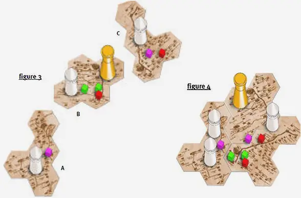 If the majority has not changed or if there is a tie, the territory is unchanged and no castle is built. A player does not add a castle to a region that already has one. If the majority in a territory has changed, all castles are removed and replaced with castles belonging to the player now in the majority in the territory.