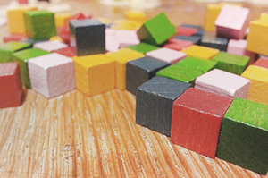 To make counting easier, the players have placed a small gap after each fifth cube.