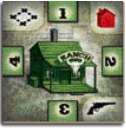 Special rules: A ranch adds 1 point to your firepower (+1 revolver). A ranch is considered a house to calculate drugstore, bank and saloon incomes.