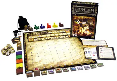 You will need guts to challenge your opponents to duels in order to secure and hold the best properties. You will also need to recruit and use the help of the most interesting "personalities" in CarsonCity to aid your cause. The winner will be the most prominent citizen in Carson City, as measured by victory points that can be won both during and after the game.