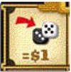 The player who wins this action must roll two dice and receives the rolled amount in cash. A3 and a 5 would result in $8.