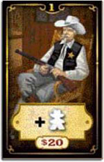 The player helped by the sheriff gets the special "sheriff " cowboy from the general reserve (white cowboy). This allows him to select one action without fear of being attacked (no one challenges the sheriff to a duel). Therefore, the white cowboy must not be placed to attack a building or to challenge someone into a duel (it must be played on a cowboy-free square). Cash limit: $20. …