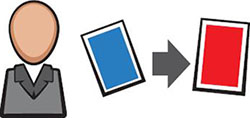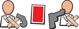 Note: The real gun is the one whose grip is complete. You can change the hand holding your guns each turn so that your opponents don't know which one is fake.