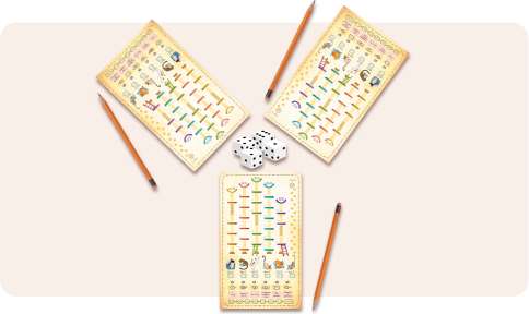 Each round the dice will be rolled and players will take turns to choose from the available dice, combining their chosen die with the one remaining central die to mark enticing items on their sheet.