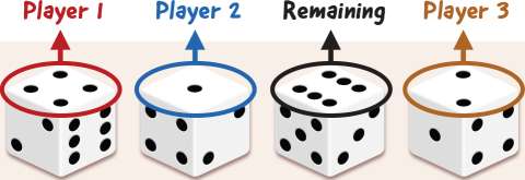 Place a number of dice in the center of the table equal to the number of players +1. Put the remaining dice back in the box