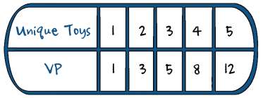 When you take a toy card, keep it in your hand until the end of the game. You gain VP based on the number of different toys you have. You may score for multiple sets.