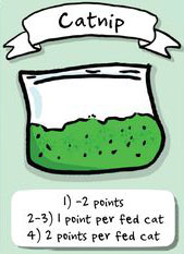 At the end of the game, if you only have 1 catnip you lose 2 VP. If you have 2 or 3 catnip, you gain 1 VP for each of your fully fed cats. If you have 4 or more catnip, you gain 2 VP for each of your fully fed cats.