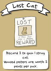 You may also discard 2 lost cat cards from your hand to take a victory point token, which is worth 2 VP at the end of the game. Lost cat cards remaining in your hand at the end of the game have no value.