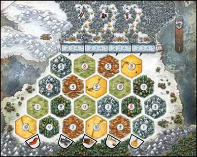 Note: A terrain hex blocked by a wildling does not produce.