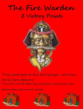 If a player has three fire stations or more, he shall receive the special card 'The Fire Wardens' (+2 VPs). This card may be taken by anyone who ends up with more fire station than the original holder of the card (like Longest Road etc).