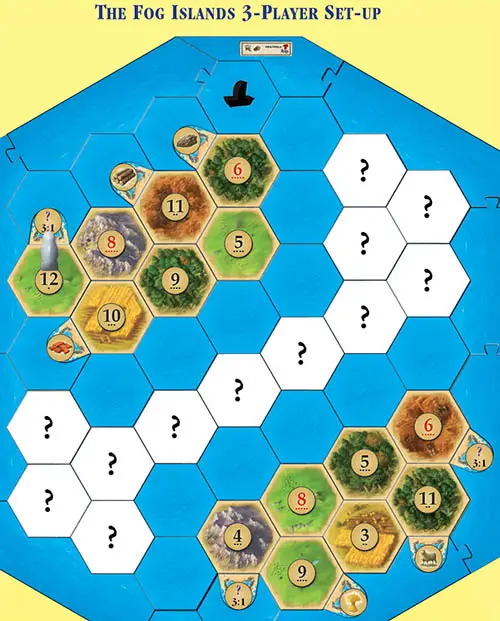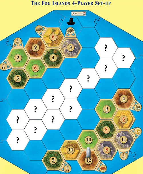 The contours of the upper and lower islands should not be altered. Within these contours, the terrain hexes and number tokens can be redistributed freely.