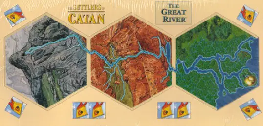 New Parts: 3 hex connected Great River tile, 8 Victory Point Tokens