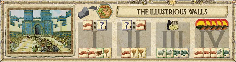 You must progress through all four stages before your Wonder is complete. To do so, pay the resource cost for the next stage and move your marker up one. You may only upgrade each Wonder once per turn.