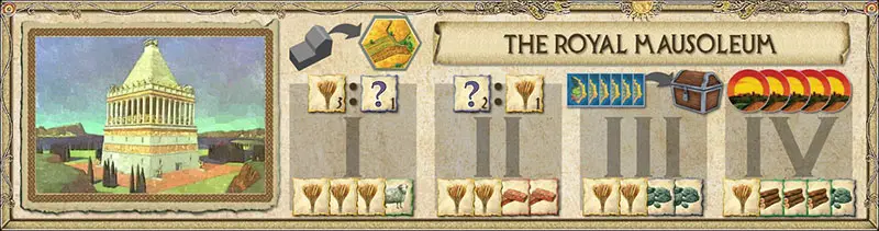 Based on the Temple of Artemis at Ephesus-Said to be the most beautiful of the wonders, dedicated to the goddess of the hunt. This temple was supported by the jewelry sales of local silversmiths, so a vast supply of ore will be needed to complete the temple.