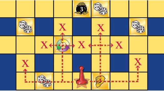 For instance, Figure 1 shows the possible squares you may land on (denoted by an 'X') if you begin the game by rolling a '4'.