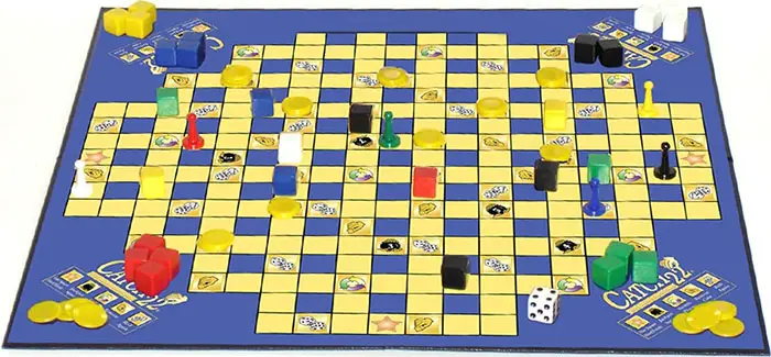 There are 14 Jackpot squares scattered around the board. On each one there is a number which tells you how many gold tokens belong in that Jackpot square.
