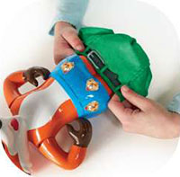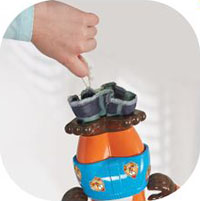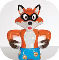 Before playing for the first time, place the stickers on the Fox's eyes, tongue and underpants