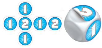 Place the 6 circle stickers on the die as shown in the illustration.